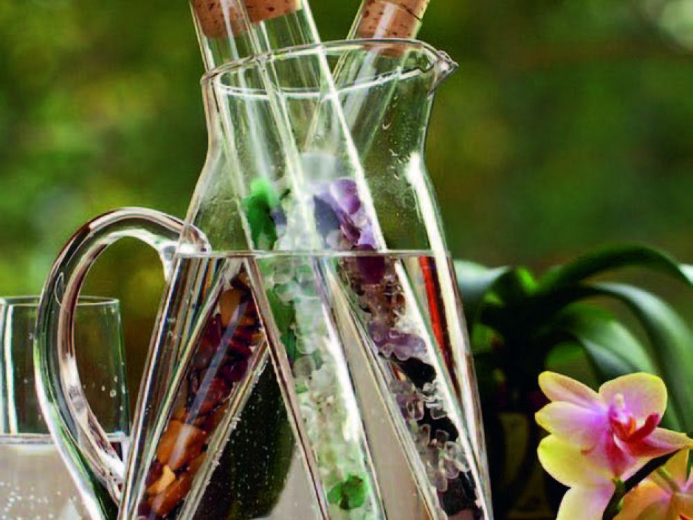 Belebung des Trinkwassers. Vitalisierung mit Edelsteinen für Wohlbefinden von Körper, Geist und Seele.