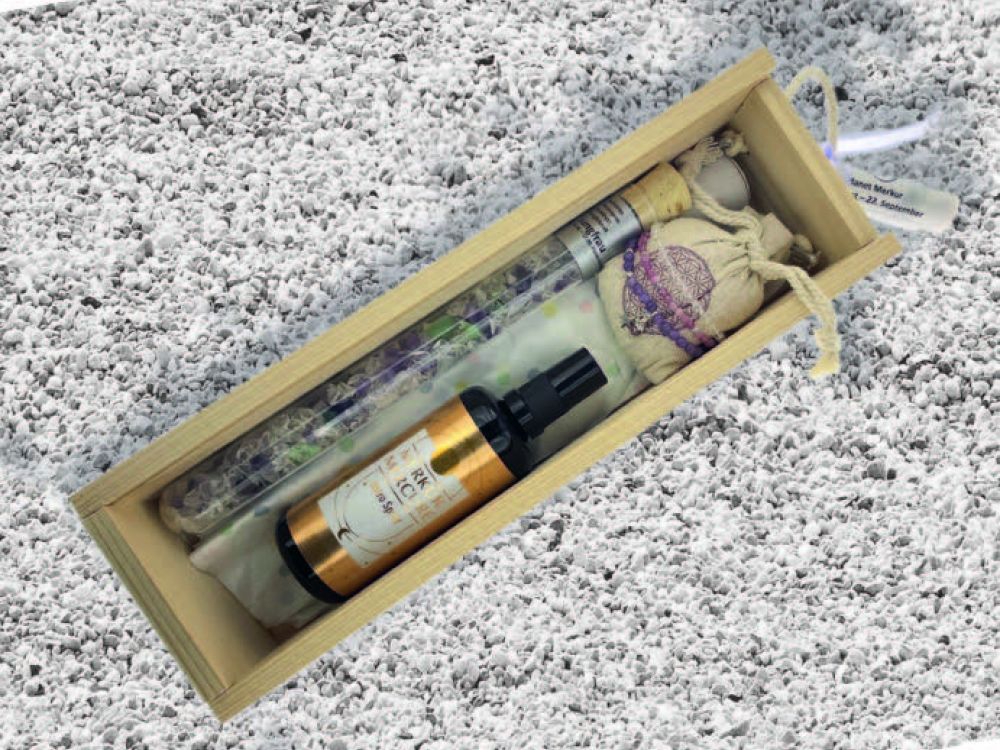 Für alle 12 Sternzeichen. Ein einzigartiges Geschenk! Mit Edelsteinwasserstab, drei Armbändern und einem praktischen Sprühfläschchen Aura-Spray.