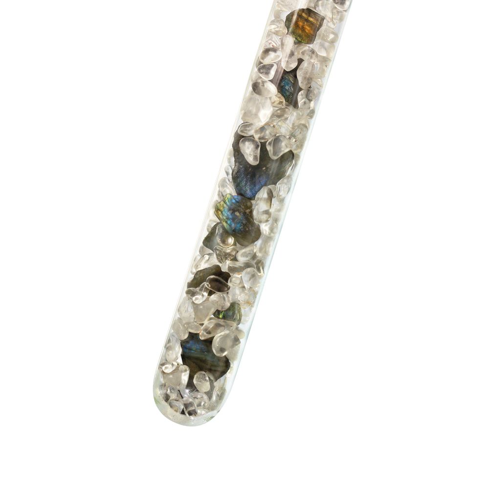 Rosenquarz, versteinertes Holz, Amethyst, Chalcedon & Rhyolith stehen für jeweils ein Element der traditionellen chinesischen Medizin.